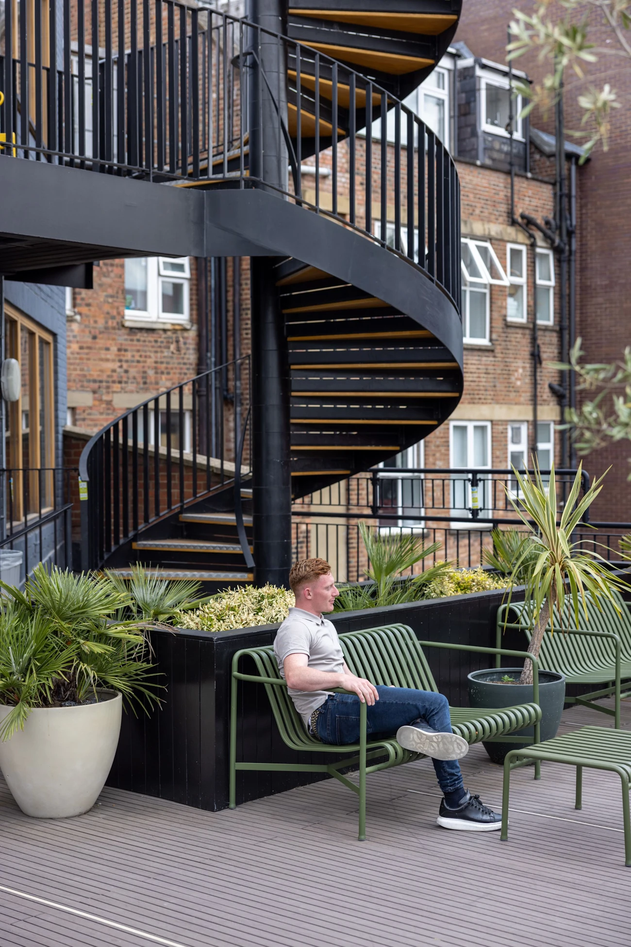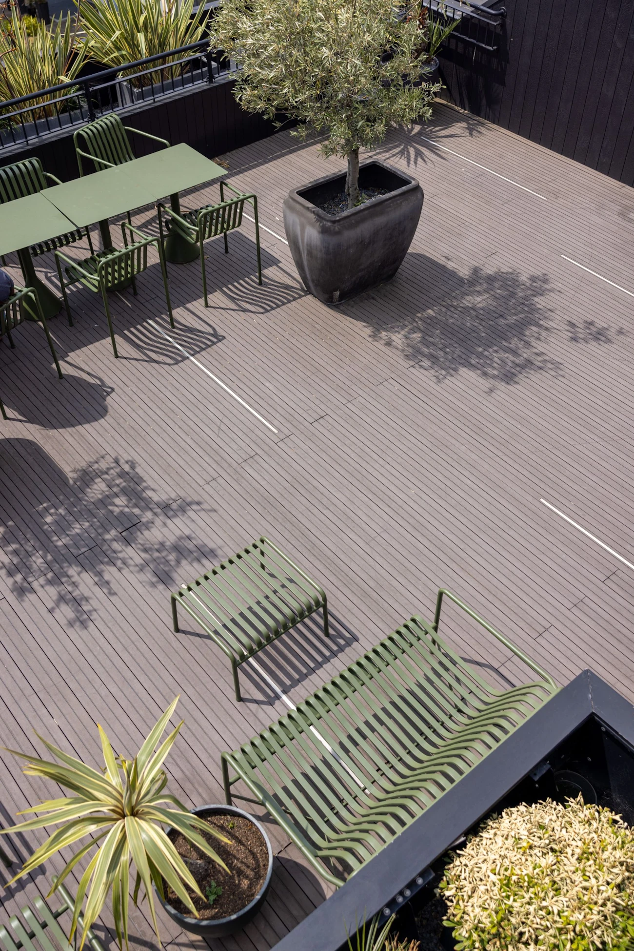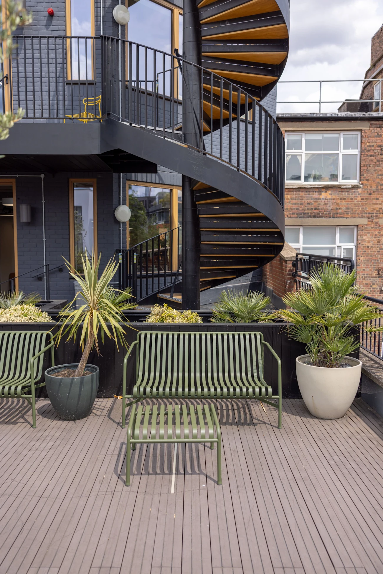 Located in the Clerkenwell conservation area this building has been transformed with a new facade and full internal refurbishment.Although redeveloped in the 1980s, the façade of 17-18 Britton Street contrasted unfavourably with the traditional frontages of this historic Clerkenwell Street, so when a full internal refurbishment was carried out in 2019 this was given a radical facelift. Peterson brick and oak window frames that increase natural light inside the building by 25% now perfectly complement the rest of the street, and with the exposed concrete soffits and columns, timber floor and exposed services of the interior, these reflect the site’s industrial heritage.The refurbishment also took advantage of unused roof space to increase the building’s facilities with the addition of a roof terrace.The ChallengeThe building’s design presented the challenge of mitigating the weight loadings across an older roof structure; a common problem when older buildings are refurbished. The request for planters to be included in the terrace design also compounded the problem, as these can be extremely heavy, especially when the soil is moist.The design also needed to reflect the choice of materials used in the rest of the project, where wood features heavily.The InstallationThe Raaft Terrace System was chosen as an ideal solution to the weight loading challenge, as its strong yet lightweight support structure spreads the weight loading evenly across the entire roof area. Interlocking extruded aluminium joists supported by pedestals create a stable, level platform that easily accommodates a wide range of decking materials, planters and other roof terrace features.Terrafina Yacht Grey Brown composite wood resin decking was used to complement the materials used elsewhere on the terrace, creating a natural-looking yet hardwearing, low-maintenance and safe deck area.Planterline Straight Planters were predrilled for timber cladding and powder coated for protection against weather and corrosion. These were placed on floor structure panels to provide permeable support for the planters while ensuring proper drainage for healthy plant growth.Once installed, the planters were clad in timbers charred using the Japanese Shou Sugi Ban process, a traditional method of protecting timber against rot and infestation while creating a dramatic and contemporary effect.The terrace was then accessorised with complementary outdoor furniture to complete the architects’ vision for a contemporary outdoor space.Products UsedSupport structure:Raaft Aluminium JoistsRaaft Adjustable PedestalsRaaft Floor Structure PanelsDecking:Terrafina Composite DeckingPlanters:Raaft Planter Systems - Powder CoatingThe ResultThe client was very pleased by the transformation of a previously vacant roof space into a functional, year-round terrace that adds value to the property.The current tenants enjoy using the terrace as an extension to their workspace, a pleasant area to relax and take lunches, and a stylish location for client functions.