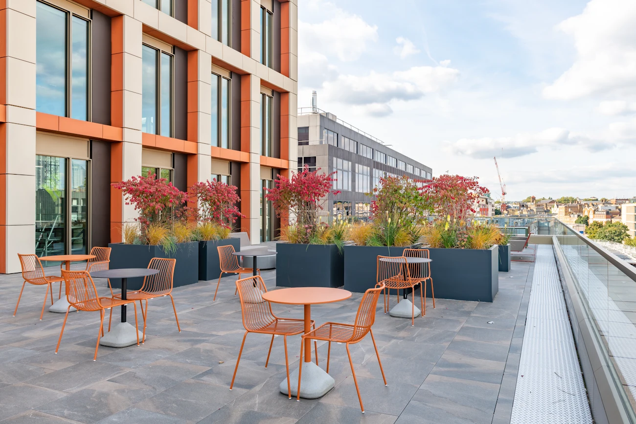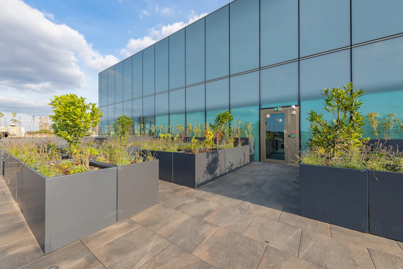 Bloom Clerkenwell is a new tech-enhanced, managed office space located above the new Farringdon Crossrail station, where over 15,000 square feet of landscaped roof terraces and an in-house gym pay tribute to the vision of a wellness-focused work environment and its aim to achieve WELL Platinum certification for health and wellbeing.With extensive planting on the terraces and an office to terrace ratio of 11% - one of the highest in London – Bloom Clerkenwell is making a positive contribution towards the capital city’s biodiversity and clean air.In 2022, Bloom Clerkenwell was the first commercial building in the UK to achieve the highest accreditations for BREEAM Outstanding, WELL Platinum, WiredScore Platinum and EPC rating A, and this influence is apparent in the choice of materials used for the terrace construction sourced from Raaft, a UK design and manufacturing company committed to sustainability and the environment.The Raaft fire-resistant aluminium joist structure used to support the terrace is both recyclable and manufactured from low-carbon materials with an A-rated Environmental Performance Certificate (EPC).Raaft bespoke steel planters are also made from renewable, recyclable materialsAtria porcelain tiles are manufactured sustainably from natural, renewable materials and energy-efficient processesLocationBloom Clerkenwell, London, EC1MArchitectJohn Robertson ArchitectsDeveloperHB ReavisProduct InstallerValley ProvincialPlanterline Straight, Powder-CoatedBut wellness and the environment weren’t the only factors influencing the decision to use Raaft products for this project.The sturdy yet lightweight construction of the terrace system’s components means they are easily moved from street level to rooftopThe system’s support structure is reconfigurable and height adjustable, so installers can easily ensure proper drainage across the entire area and overcome issues with rooftop structuresRaaft floor structure panels enable planters to be installed with even weight distribution and proper drainage and without risk of damage to roof membranesThe selection of designs in the Atria porcelain tile range makes it possible to create beautiful outdoor areas that can host a wide variety of events and activitiesAtria porcelain also offers a durable, low-maintenance surface that is resistant to moss, mould and algae, will never rot, and is stable and safe even when wet