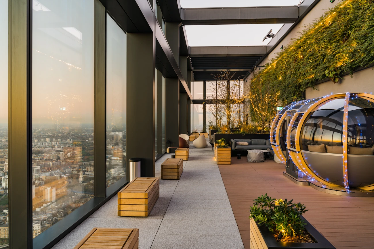Landmark Pinnacle, located in Isle of Dogs, London is the tallest residential tower in Europe.At 75 Floors, Landmark pinnacle can boast the highest homes in western Europe. All 985 apartments within the structure can see East and west along the river, meaning this height gives the home-owners the most uninterrupted views in London. The property owned by developer Chalegrove properties does come with some perks - just some of the many amenities include private cinema, social lounges, gym and not to mention 4 garden areas - on levels 27 and 75.Landmark Pinnacle, a residential building comprising of multiple garden spaces throughout. Total size of the top floor roof garden equates to 6566 ft² or 610m². Raaft collaborated with landscape architects Farrer Huxley and installers Valley Provincial who came together and enabled the successful completion of such a prestigous project. The Raaft system was used as a substructure under the full terrace area on level 75 and level 27. Floor structure panels worked as part of the Raaft system as a base for all the planters. Other products that were installed, comprised of our Terrafina decking and our Planterline planters finished in RAL 7016 anthracite grey. Typical constraints had to be overcome on this project involving tight deadlines to meet which came with it, close collaboration with the contractor. Raaft had meticulously planned the project ahead of design and manufacture by working closely with Farrer Huxley, ensuring it was not only achievable, but achievable to the highest standard.