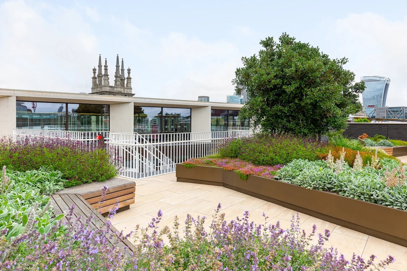 A Landmark Redevelopment on the ThamesMillennium Bridge House, also known as One Millennium Bridge, has undergone a radical refurbishment and extension on the north bank of the Thames in the City of London. The scheme has breathed new life into a 1980s building, retaining more than 60% of its original structure while delivering 244,362 sq. ft of modern office space, along with retail space, restaurants and expansive rooftop garden terraces.Designed by Piercy & Co with landscape architecture by Andy Sturgeon Design, the project sets a new benchmark for sustainable reuse in the capital. Prioritising Sustainability Through RetentionA “retain-first” approach was central to the redevelopment. By keeping 60–68% of the original structural frame, the project dramatically reduced embodied carbon compared with a full demolition and rebuild. This choice preserved the building’s urban presence while enabling its transformation into a greener, more vibrant space, fit for modern use.The result is a sustainable landmark on the riverfront, combining heritage with innovation.Terraces Designed for Wellbeing and ConnectionOne of the defining features of Millennium Bridge House is its outstanding roofscape, which delivers some of the best views in London. The 2,527 m² roof garden incorporates two key terrace zones:A 375 m² free-to-access public terrace, offering panoramic views across the Thames and Tate Modern.A 570 m² restaurant terrace, creating elevated spaces for social interaction, dining, and relaxation.These terraces are more than architectural features. They connect people with nature, provide restorative green spaces in the heart of the City and contribute to occupier wellbeing.Sustaining the EnvironmentSustainability extends across the roofscape, which integrates green and blue roof systems. The green roofs are planted with native and non-native species to promote biodiversity, enhance ecological value and mitigate the urban heat island effect.Meanwhile, the blue roof system manages rainwater sustainably, with planters designed for passive attenuation and irrigation, reducing run-off into London’s drainage network.Together, these systems create a resilient urban landscape that is both functional and beautiful.Raaft Support StructuresA major enabler of these rooftop terraces was the relocation of rooftop plant and mechanical equipment into more efficient systems that use heat recovery and thermal storage. This freed up space for the terraces – but created a challenge.The terrace level needed to be raised above the building’s service points, while still allowing easy access for ongoing maintenance. Here, Raaft’s Support Structure system of pedestals and joists provided the perfect solution.The modular system ensured:A stable, level platform across the roofscape, accommodating decking, tiling and planters.Removable surfaces, allowing straightforward access to underlying services.Even weight distribution, protecting the roof’s integrity and extending its lifespan.Products supplied included Raaft Preventa® Fire-Rated Metal Pedestals and Raaft Preventa® Fire-Rated Aluminium Joists – each contributing to a safe, durable and adaptable terrace system.A Roofscape That Delivers More Than ViewsThe completion of Millennium Bridge House at the end of 2024 marked more than a physical transformation. It is now a sustainable, wellbeing-focused workplace with public benefits that extend beyond its occupiers.By combining retention of structure, ecological landscaping, and innovative support systems, the project has delivered:Greener spaces in the City of London.Public access to outstanding views and open space.Sustainable water management and biodiversity enhancements.A healthier, more engaging urban environment for all.The Raaft Support Structure system played a crucial role in making this ambitious roofscape possible, demonstrating how modular, adaptable solutions can unlock design potential while supporting long-term sustainability.Raaft roof terrace designroof terrace project - Millennium Bridge