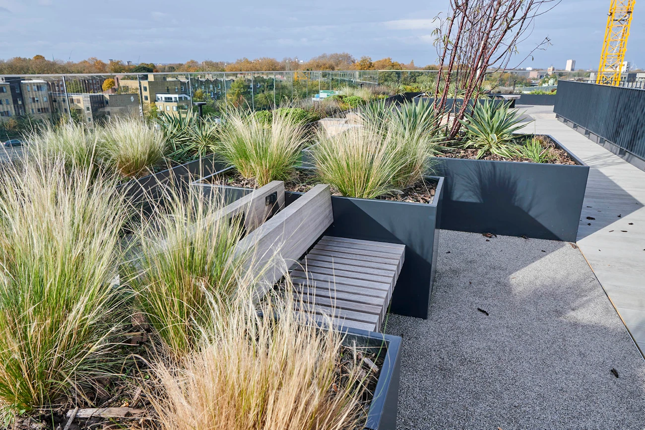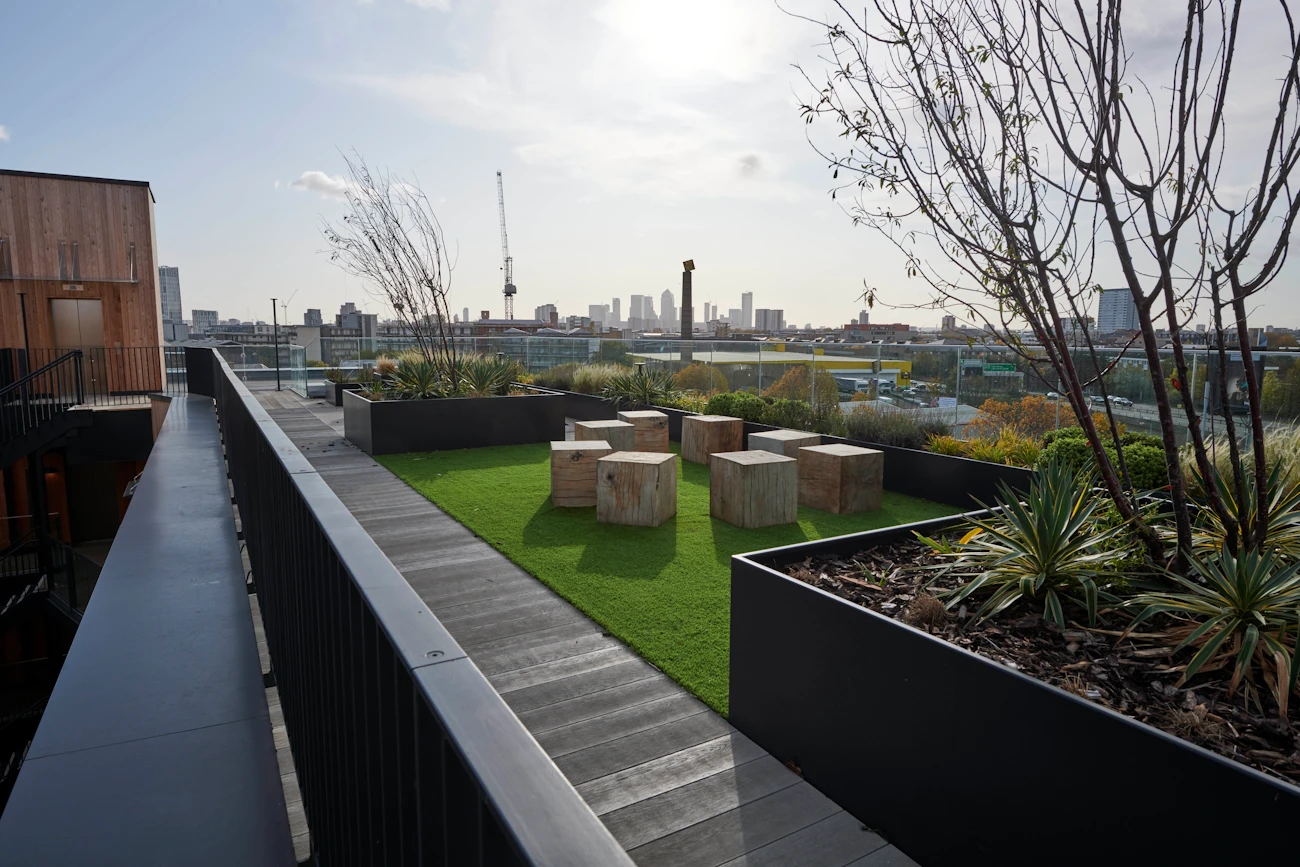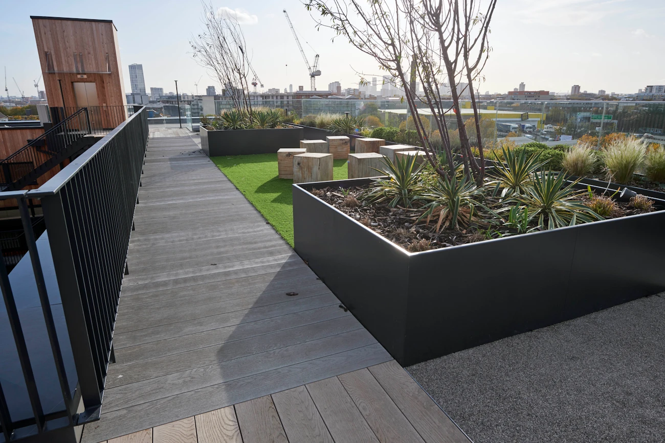 Set above the residential development at Monier Road, the contemporary roof terrace combines green space and planters with decking and seating and is designed to be a communal social and entertainment place for residents. The project had all the typical challenges of a roof terrace and high rise construction, as well as a requirement to use an untested surface.Residential Roof Terrace at Old Smoke HousePowder Coated FinishOne Complete Terrace SystemThe Raaft Terrace System was used to combat the roof slope and create a level surface. The System was also able to support a variety of surfaces, and provided a new base for a resin-bound surface, which had not previously been tested.The pedestals were installed straight on top of the waterproofing, with the roof trays onto the pedestals. This allowed for water runoff to avoid pooling. The pedestals and joists formed the underlying support for the decking, planters, benches, and grass areas.The sub-base also held the resin-bound roof. The galvanised Floor Structure Panels were set directly on pedestals and screwed together to make a really rigid surface that held the resin."The New Shoreditch"Described as the new Shoreditch, the development is now an artistic hub aimed at creative professionals. The old industrial style blends with the new and creates an exciting, modern canal-side community with views over the Olympic site, Queen Victoria Park. Raaft's high-quality, contemporary style products give the roof terrace an excellent finish and it is an ideal communal space.